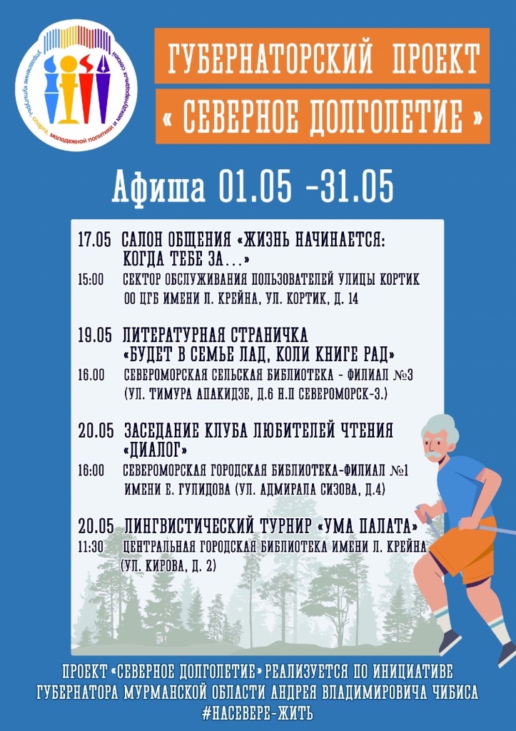 В Мурманской области по поручению губернатора Андрея Чибиса реализуется проект «Северное долголетие», направленный на улучшение качества жизни старшего поколения. Публикуем адреса учреждений и организаций, участвующих в проекте.