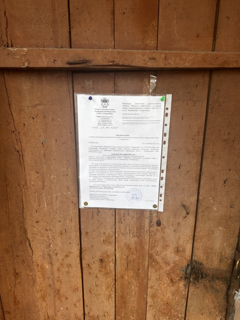 Уважаемые владельцы объекта «Нежилое сооружение», самовольно установленного в районе МКД № 13 по ул. Ломоносова г. Североморск!