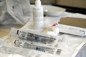 Сегодня выездной пункт Североморской ЦРБ работал в администрации муниципалитета. Прививку от гриппа поставили сотрудники администрации и подведомственных учреждений.