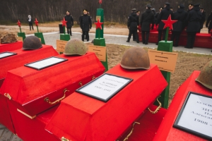 По окончании митинга на территории поискового кладбища мемориального комплекса были преданы земле останки 42 советских воинов, погибших в годы Великой Отечественной войны. Участники мероприятия возложили венки и цветы в память о героях.