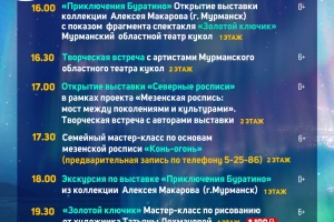 С 16.00 до 21.00 в залах Североморского музейно-выставочного комплекса будут проходить экскурсии, открытия выставок, творческие встречи, мастер-классы (ведется предварительная запись).