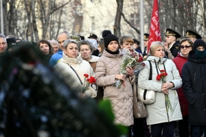 Огромное количество жителей Североморска пришли на торжественное мероприятие. Из желающих возложить цветы к подножию мемориала выстроилась очередь.