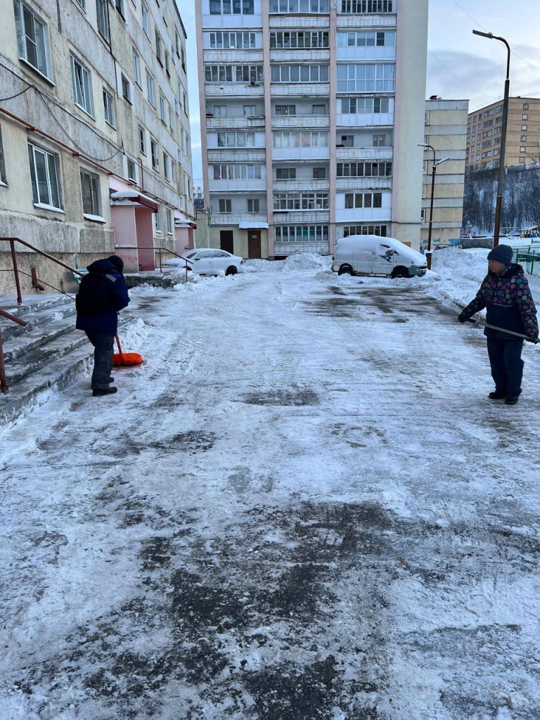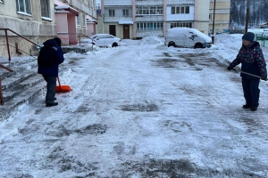 Уборку придомовых территорий 388 МКД, включая еще 31 лестницу и территории контейнерных площадок, а также расчистку кровель обеспечивают 14 управляющих организаций и одно ТСЖ. Графики уборки корректируются с учетом погоды.