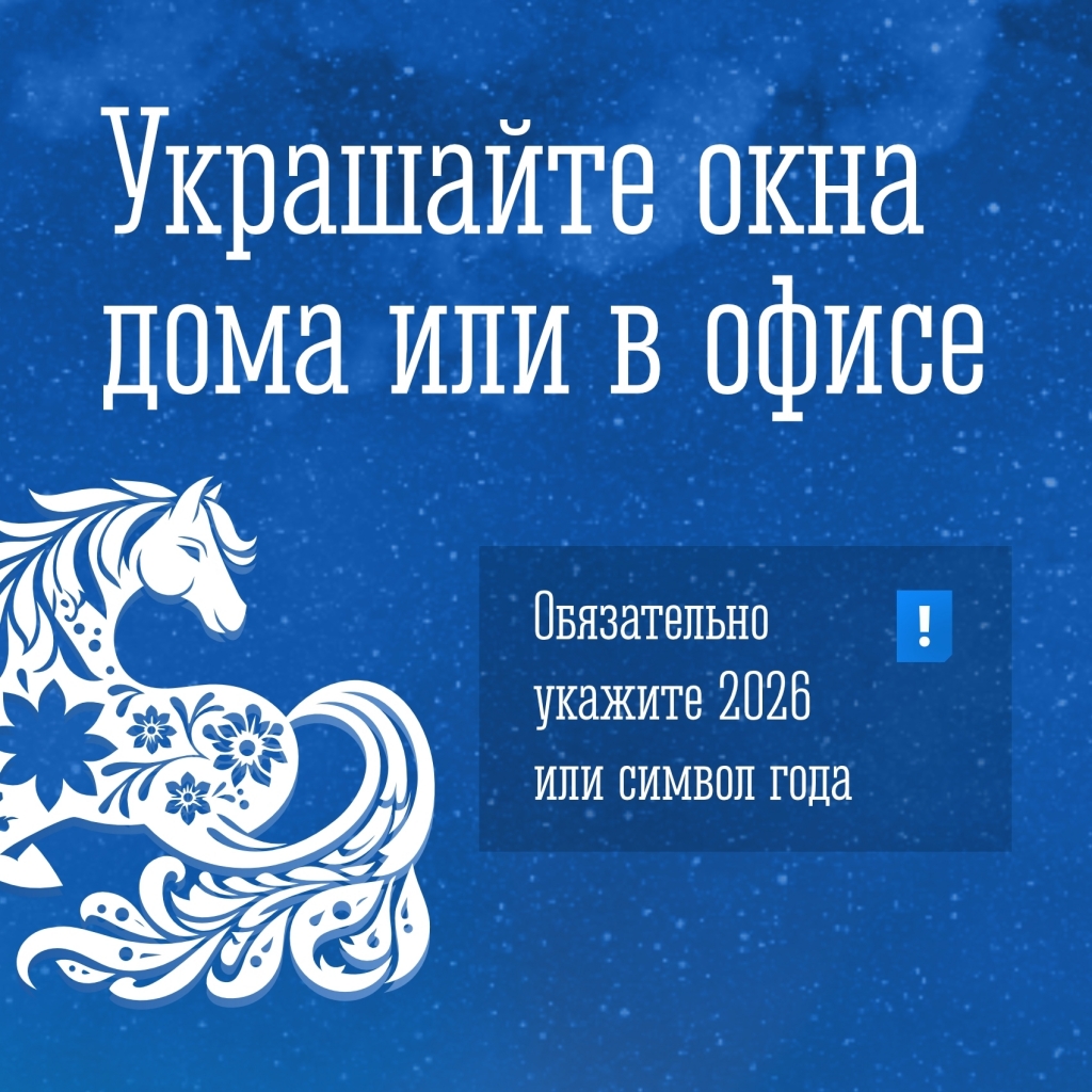1. Украсить окно/ балкон (обязательно использовать в оформлении символ года - Лошадь или год - 2026)