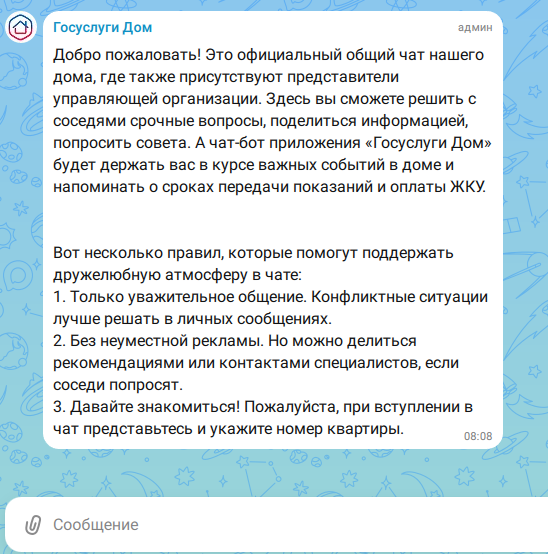 Важно: администратором домового чата является представитель управляющей компании. Все вопросы можно решать напрямую!