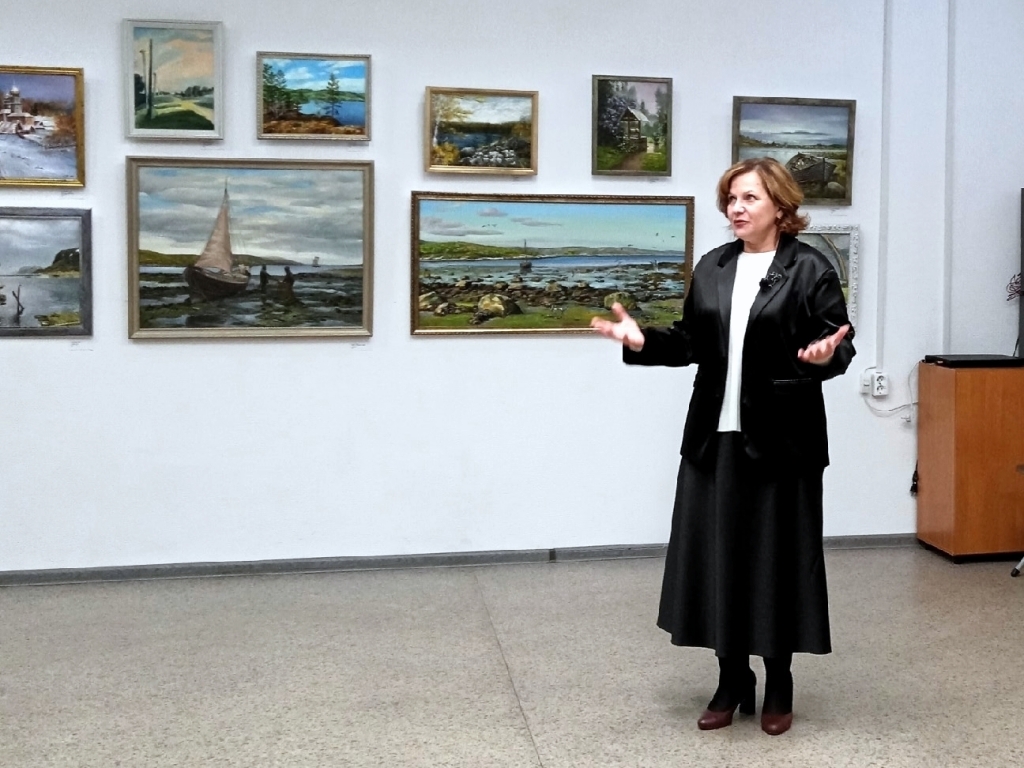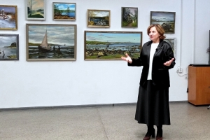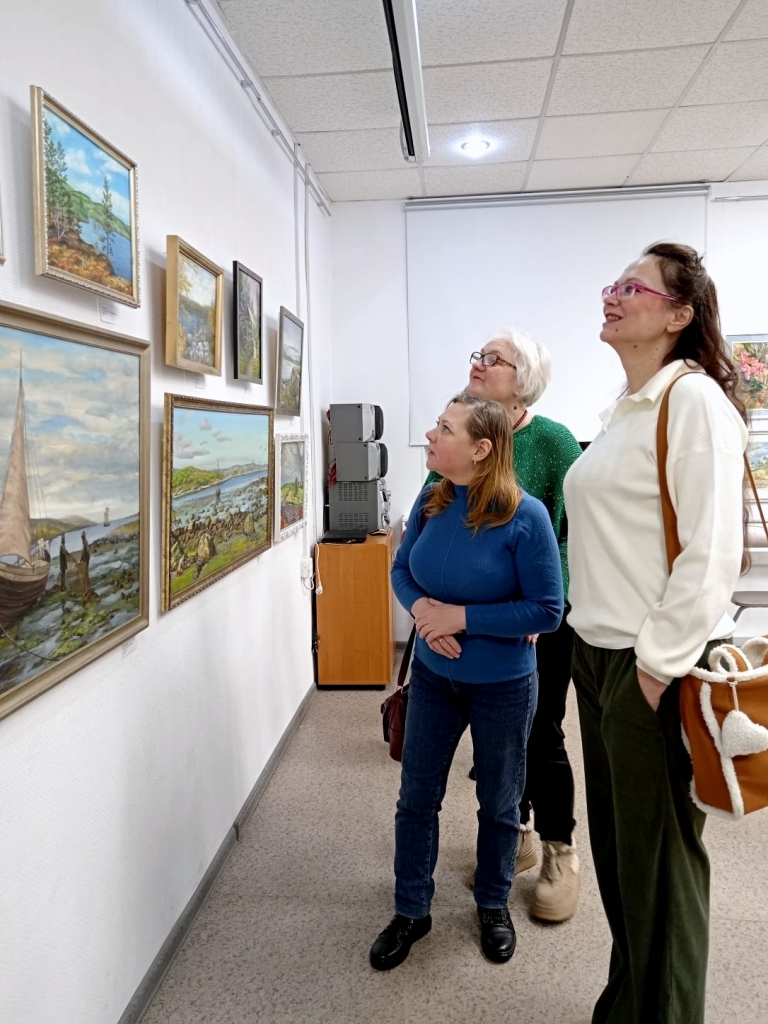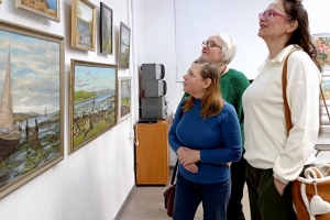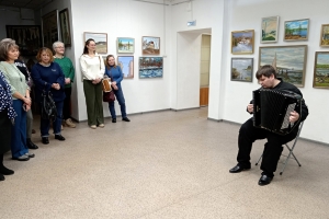 В экспозицию вошли более 50 живописных и графических работ. На них знакомые пейзажи, а также натюрморты, портреты, выполненные участниками студии североморских художников "Ультрамарин", которую возглавляет Сергей Скоров.