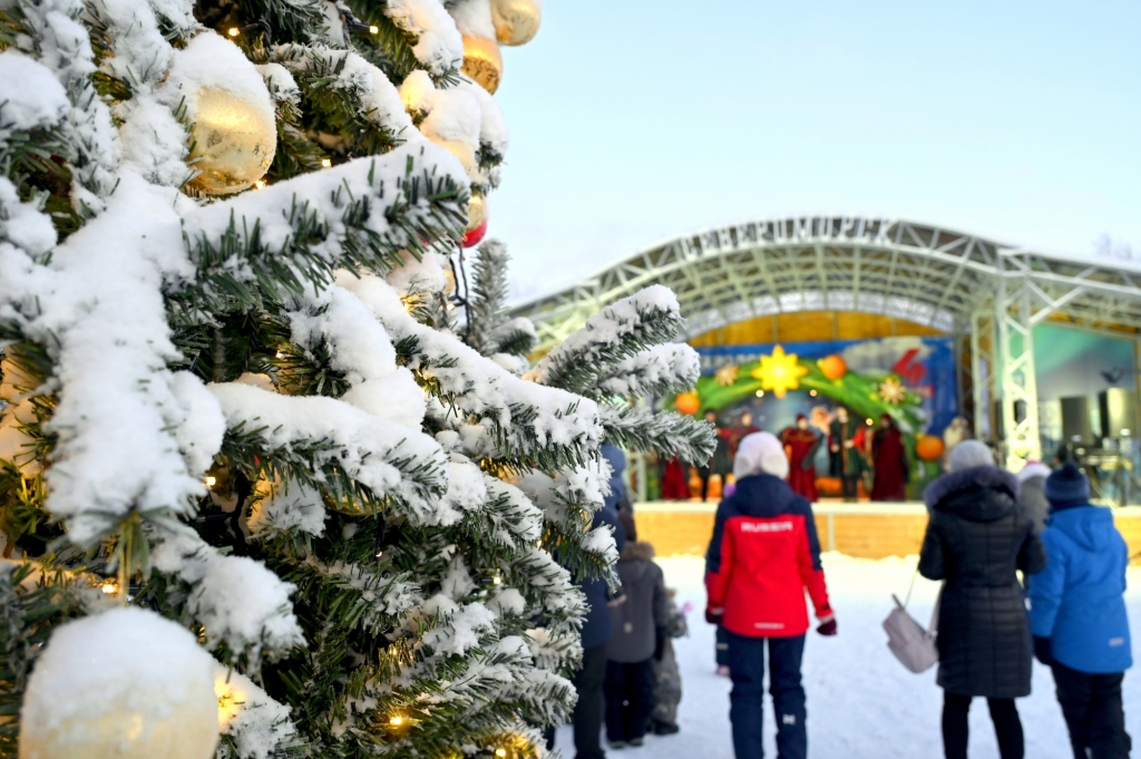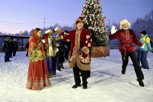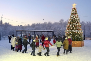 Рождественские гуляния в этом году прошли в обновленном городском парке. Возле ёлки на танцплощадке праздничным забавам самое место!