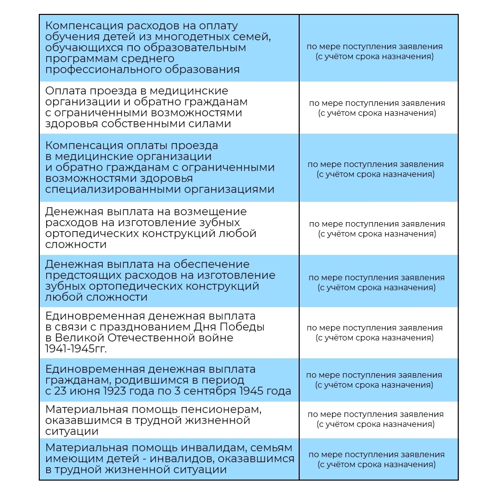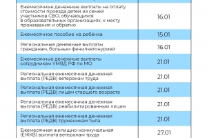 Центр социальной поддержки населения Мурманской области напоминает график выплат.