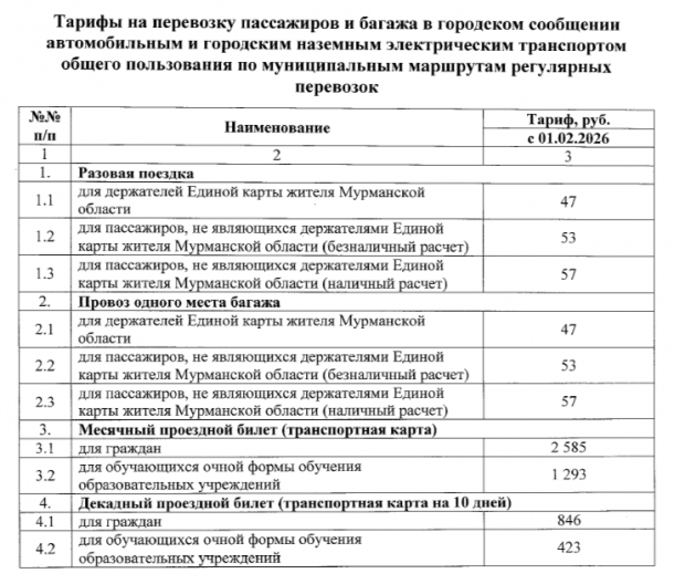 Установлены тарифы на перевозку пассажиров и багажа общественным транспортом, которые будут действовать с 1 февраля 2026 года по 31 января 2027 года. Они утверждены Постановление Комитета по тарифному регулированию региона.
