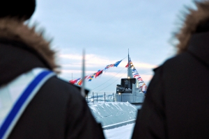 Сегодня на причале, где ошвартована «К-21», состоялся торжественный митинг. Участие в нем приняли военнослужащие Североморского гарнизона, ветераны военной службы, представители Совета депутатов ЗАТО Североморск, воспитанники Североморского кадетского корпуса. На борту легендарной подлодки под аккомпанемент военного оркестра вновь были подняты Флаг Военно-Морского Флота СССР, гюйс и флаги расцвечивания.