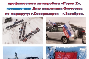 ➣Так, в Североморске 21 февраля в 10.00 в сквере у памятника участникам специальной военной операции стартует автопробег «Герои Z», который проводит территориальная организация Северного флота Профсоюза гражданского персонала ВС РФ при поддержке Комитета молодежной политики Мурманской области и участии общественных организаций региона. Экипажи отправятся по маршруту Североморск - Мурманск - Заозерск.