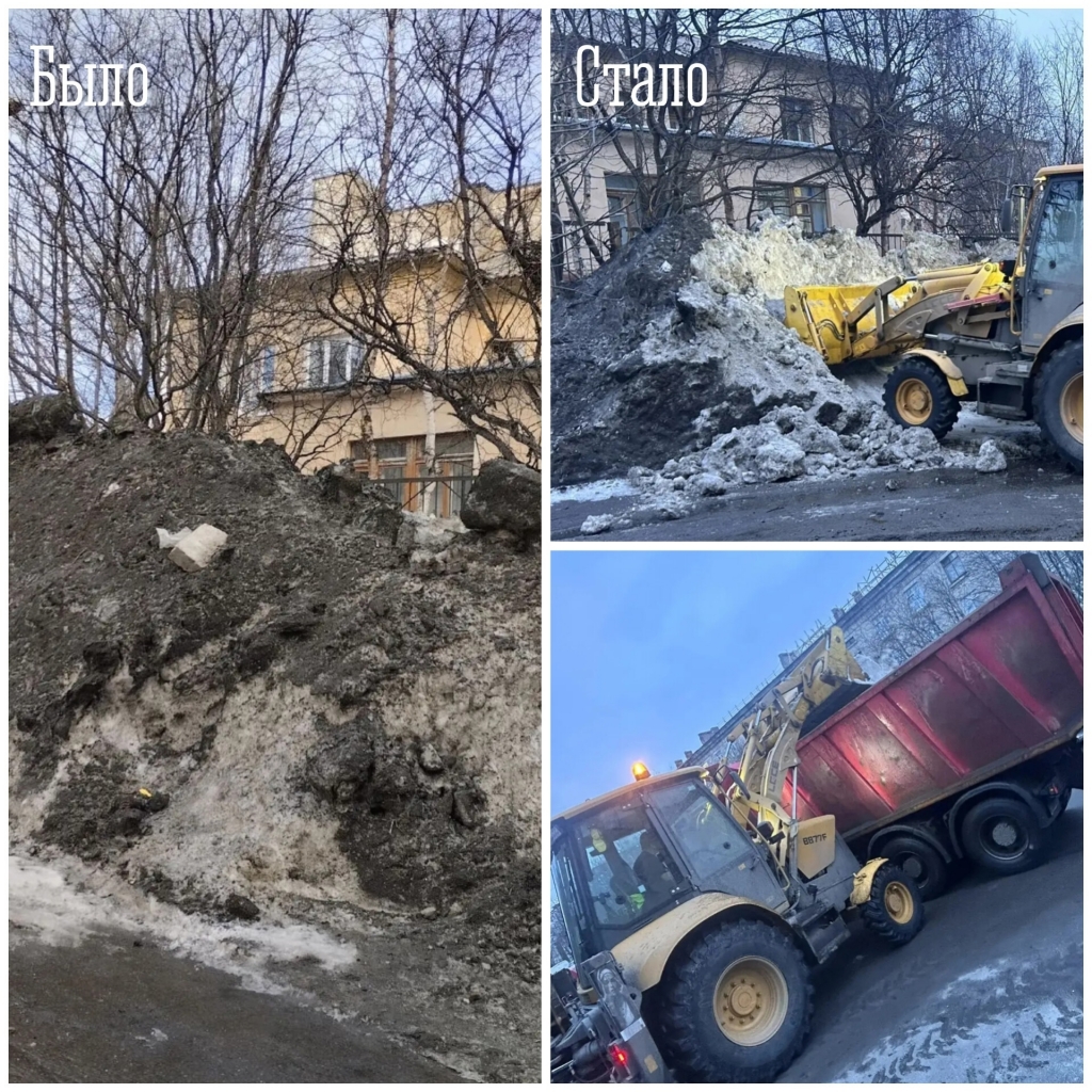 ✓ вывезли снег с ул. Комсомольской, 15;