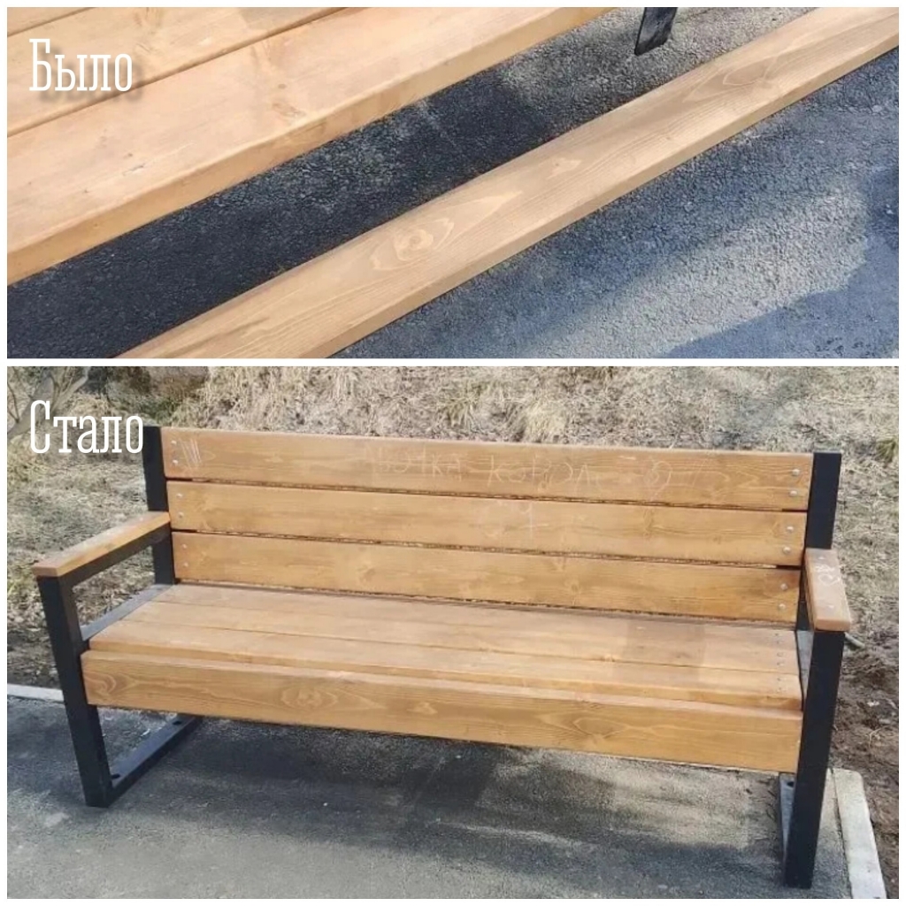 ✓ отремонтировали скамейку в городском парке;