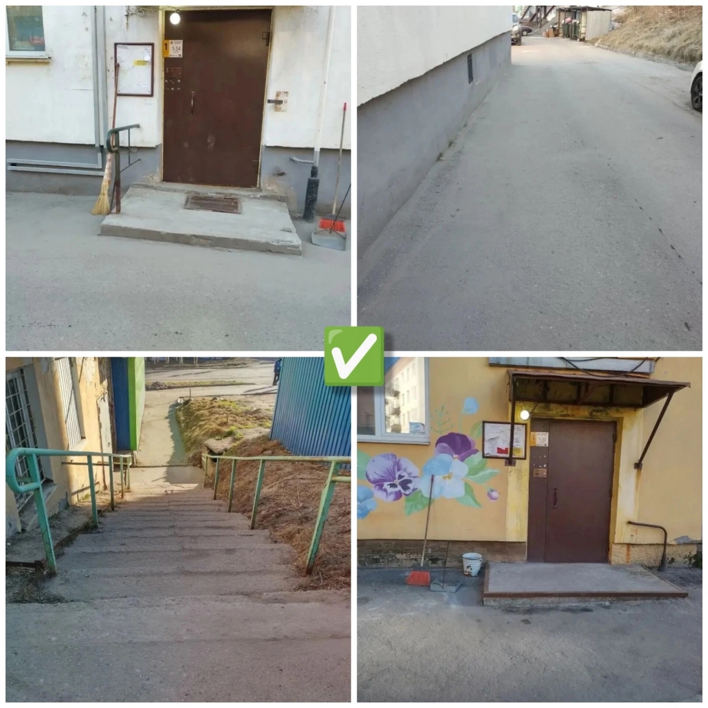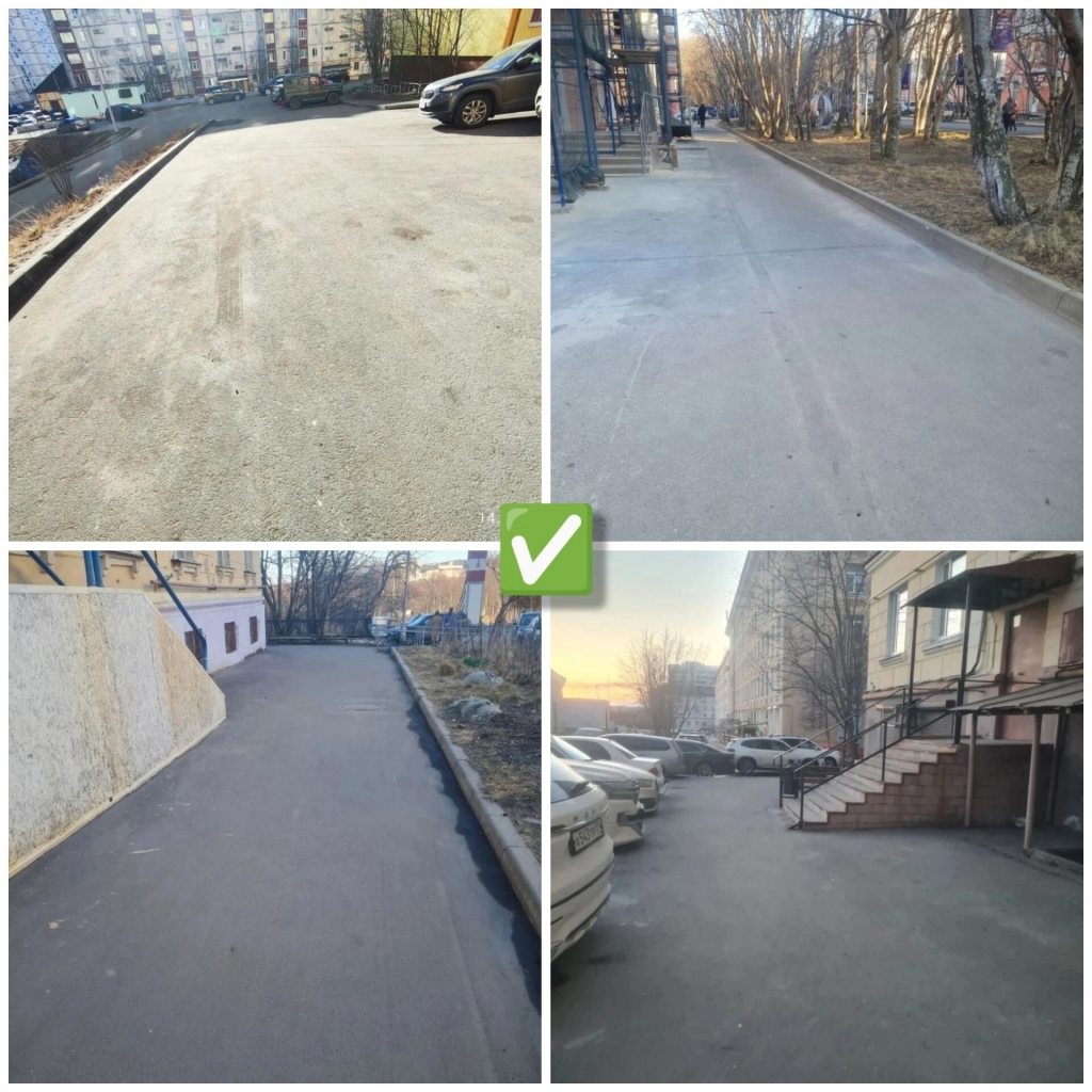 ✓ от мусора и песка убрали придомовые территории на ул. Душенова, 14, 18, 20, 22, ул. Советская, 7, ул. Инженерная, 1, ул. Кирова, 10, 12, ул. Сафонова, 13, ул. Адмирала Сизова, 16, 17, 18, 19, 22;