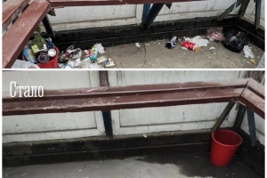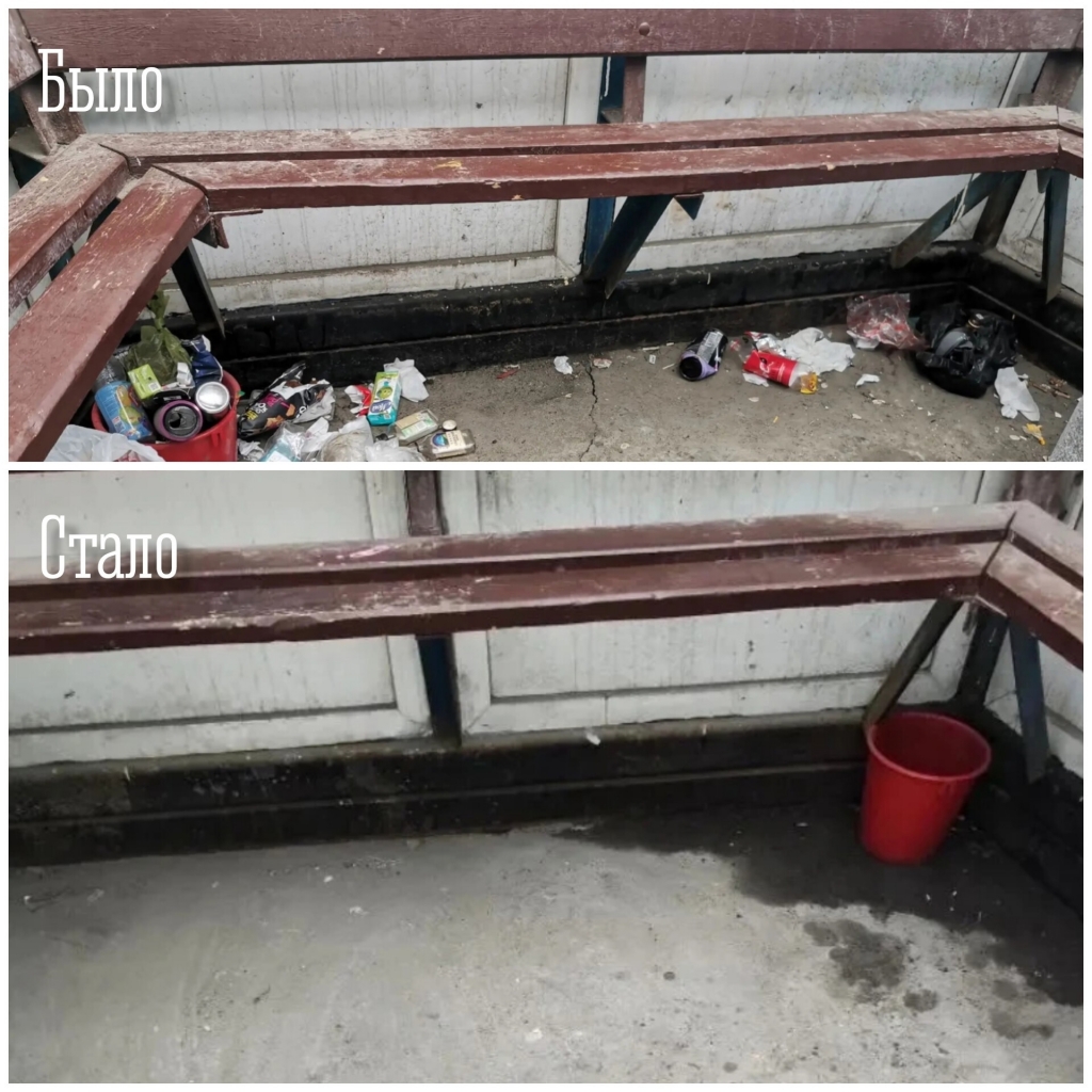 ✓ убрали мусор на автобусной остановке в районе ул. Вице-адмирала Падорина,15;