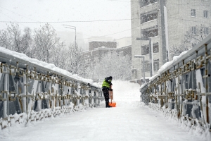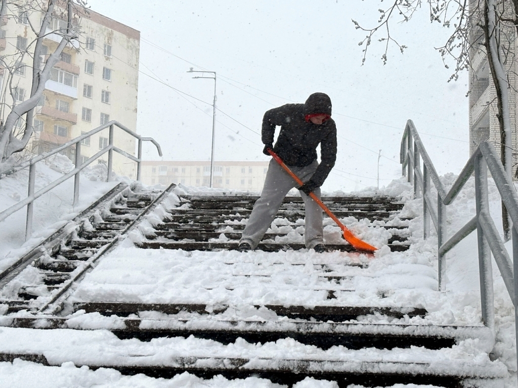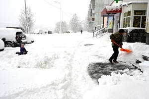 Весенний снегопад - это красиво, но требует усиленной работы от коммунальных служб. Управляющие оргнанизации и подрядчики, отвечающие за содержание улично-дорожной муниципальной сети и пешеходных маршрутов , трудятся несмотря на циклон и выходной день.