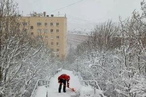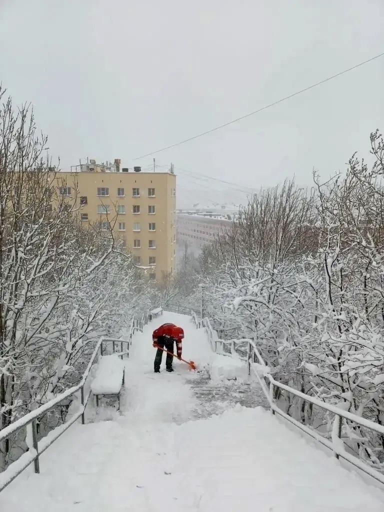Вчера коммунальные службы расчищали снег весь день. Особое внимание уделили трапам и тротуарам. Подрядчики работали в том числе и в ночную смену, чтобы сегодня североморцы могли безопасно ходить по улицам, - поделился глава ЗАТО Владимир Евменьков. - За субботу выпало 40 см осадков. Уборка во дворах и на проездах началась во время снегопада и продолжится до полного устранения последствий непогоды.