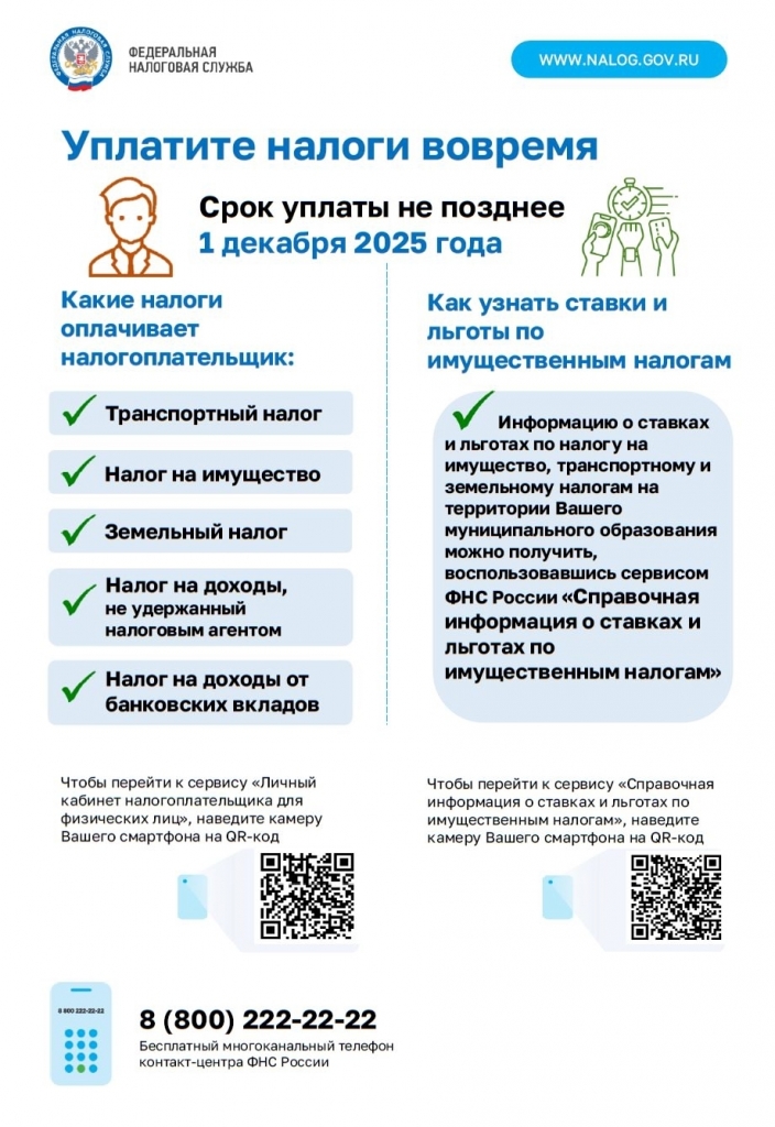1 декабря – срок уплаты имущественных налогов и НДФЛ, напоминает УФНС России по Мурманской области.