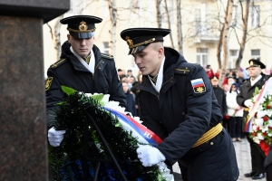 Огромное количество жителей Североморска пришли на торжественное мероприятие. Из желающих возложить цветы к подножию мемориала выстроилась очередь.