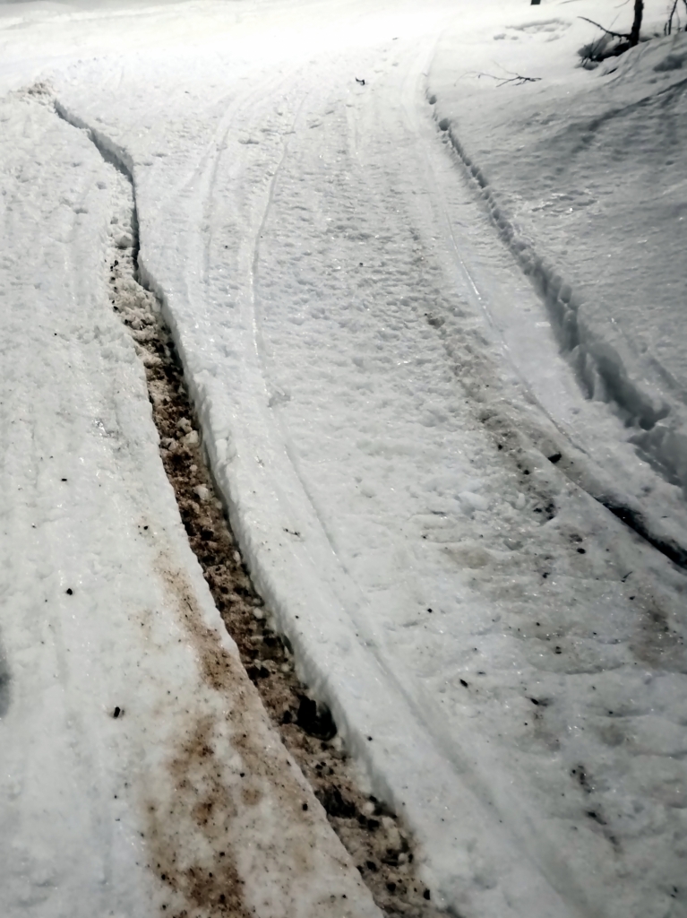 Подъем и спуск в настоящее испорчены. Их готовили специально для лыжников ручным способом больше месяца. Новогодние каникулы уйдут на то, чтобы восстановить трассу. А могли бы дружно кататься на лыжах...