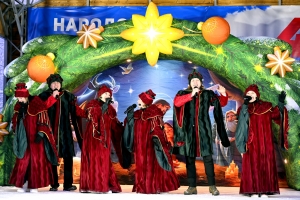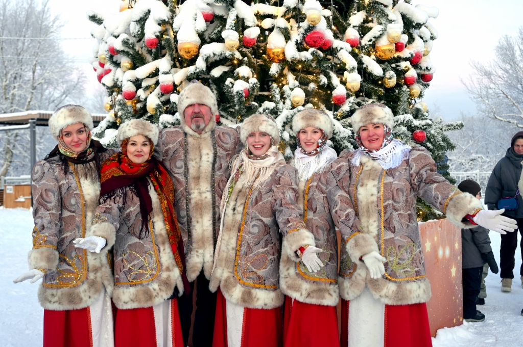 Рождественские гуляния в этом году прошли в обновленном городском парке. Возле ёлки на танцплощадке праздничным забавам самое место!