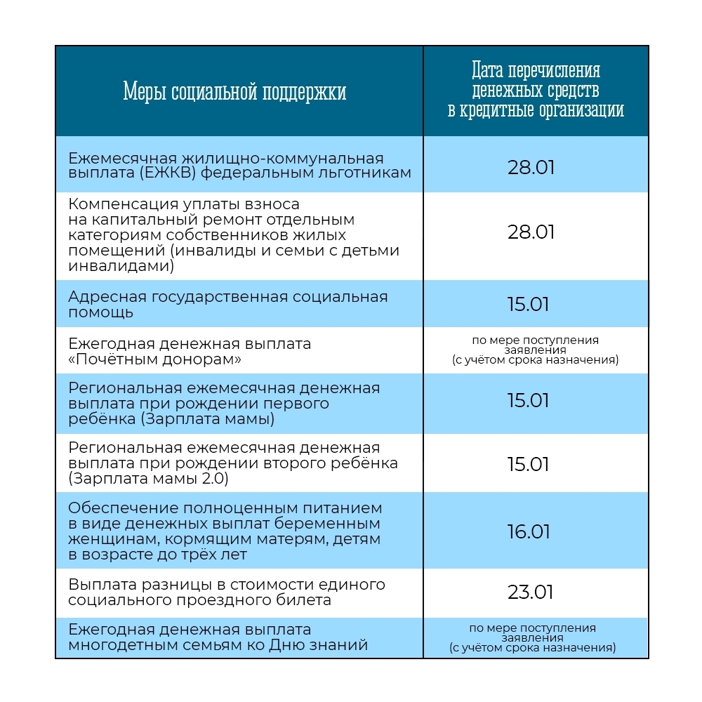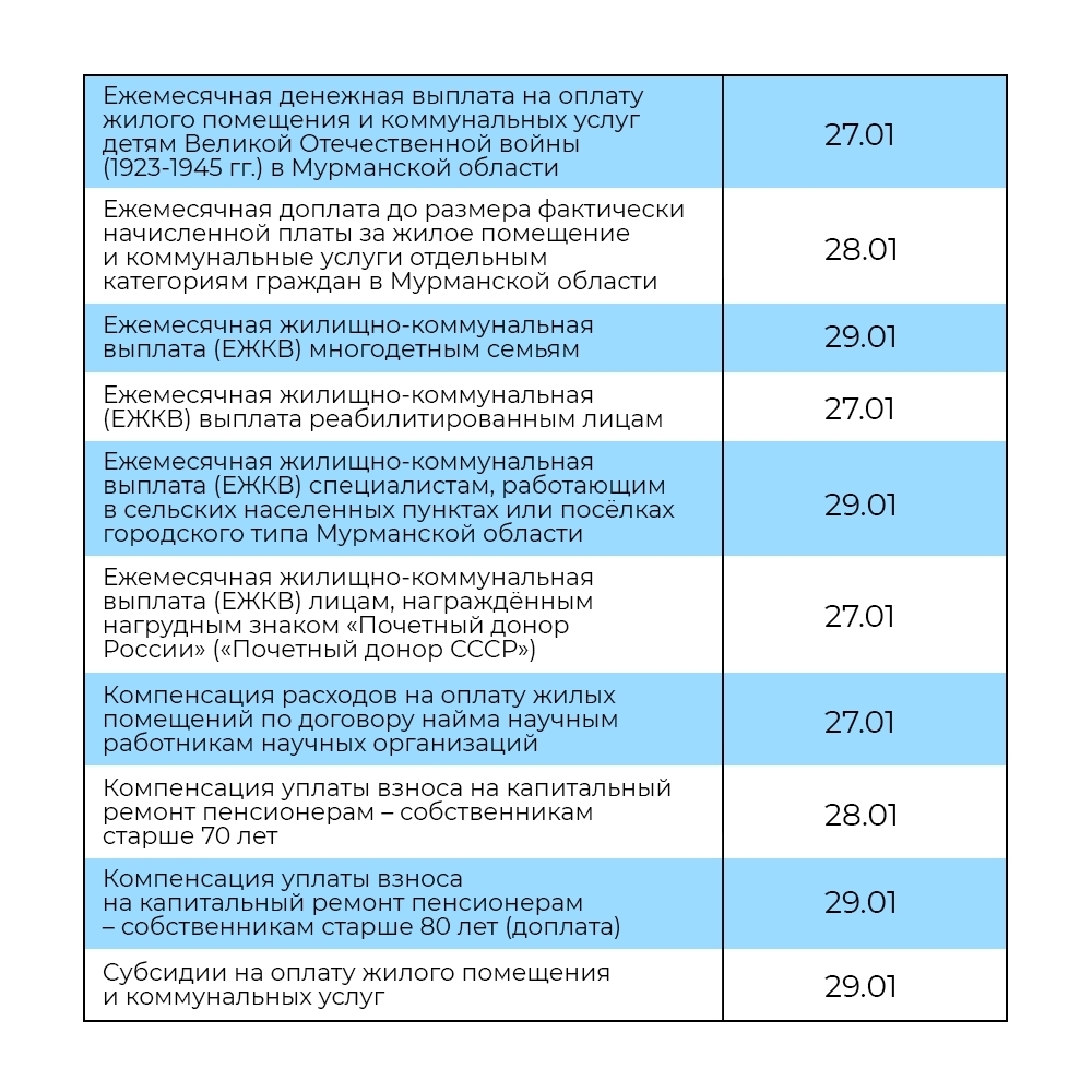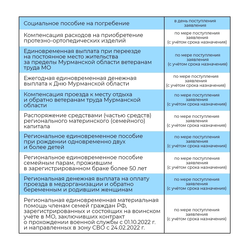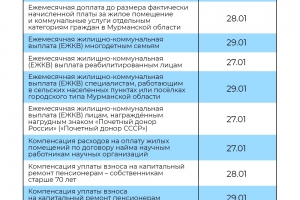 Центр социальной поддержки населения Мурманской области напоминает график выплат.