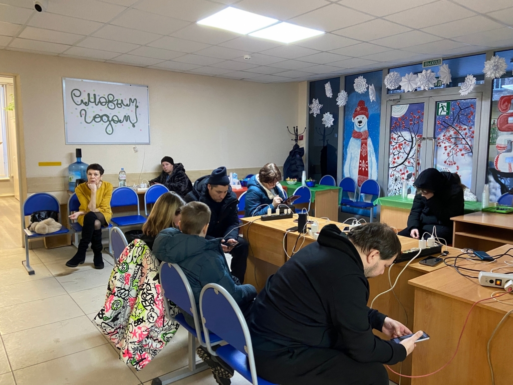 Здесь можно подзарядить телефоны и поесть. В четырех школах и двух детских садах организовано бесплатное горячее питание. По всем адресам можно воспользоваться микроволновой печью, чайником, кулером.