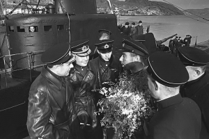 Сегодня на причале, где ошвартована «К-21», состоялся торжественный митинг. Участие в нем приняли военнослужащие Североморского гарнизона, ветераны военной службы, представители Совета депутатов ЗАТО Североморск, воспитанники Североморского кадетского корпуса. На борту легендарной подлодки под аккомпанемент военного оркестра вновь были подняты Флаг Военно-Морского Флота СССР, гюйс и флаги расцвечивания.