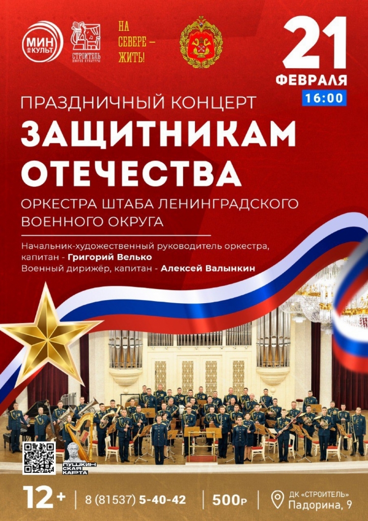 ➣21 февраля в 16.00 праздничный концерт «Защитникам Отечества» во Дворце культуры «Строитель» даст оркестр штаба Ленинградского военного округа.
