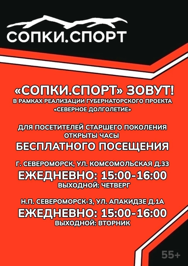 ➣Организовано посещение спортивных занятий. В бассейне «Североморец» жители «серебренного возраста» могут бесплатно посещать сеансы оздоровительного плавания. А в «СОПКАХ.СПОРТ» уделять время физической активности.