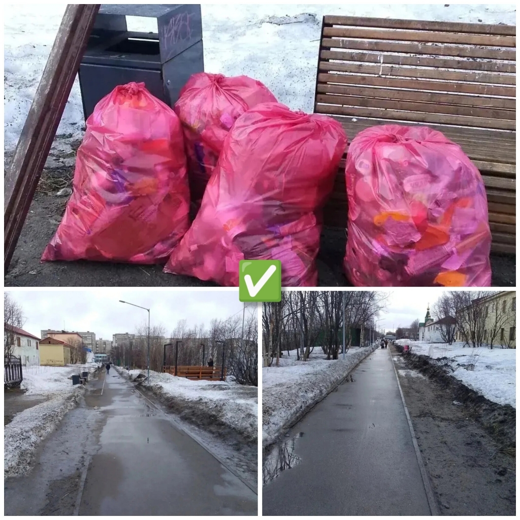 ✓ убрали от мусора территорию от почты к храму на ул. Северной;