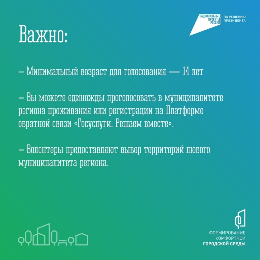 Принять участие в голосовании может любой житель страны старше 14 лет на платформе zagorodsreda.gosuslugi.ru, в мобильном приложении «Госуслуги Решаем вместе», а также с помощью волонтеров в общественных местах. Голосование продлится до 12 июня: vk.cc/cKZRGh