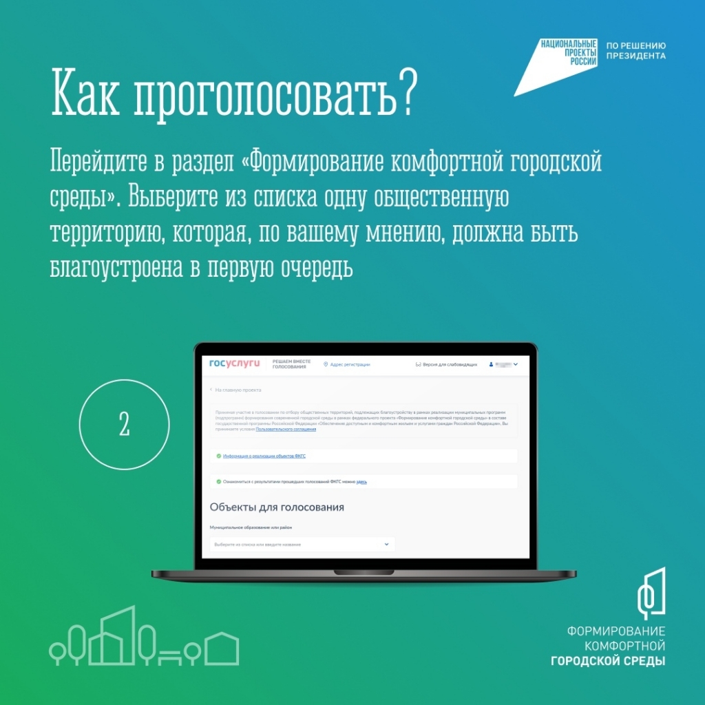 Территории, набравшие наибольшее количество голосов, будут благоустроены в первую очередь. Именно жители определяют, что это будет. Наш муниципалитет представлен двумя проектами: