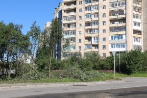 Следующая остановка — перекресток улиц Колышкина и Флотских Строителей. На пересечении этих улиц производятся работы по вырубке кустарников, для обеспечения необходимой зоны видимости автолюбителям, чтобы со всех сторон этот перекресток мог проосматриваться.