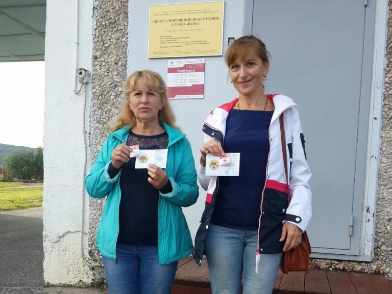 Золотые значки отличия комплекса ГТО получили жительницы Североморска Лариса Карпова и Анна Малиновская.
