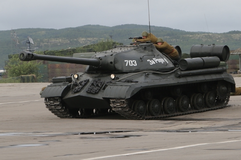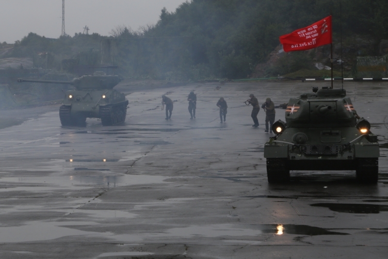 В рамках проведения военно-технического форума «АРМИЯ-2017» на Северном флоте состоялась историческая реконструкция наступления частей Красной армии при поддержке бронетехники времён Великой Отечественной войны.