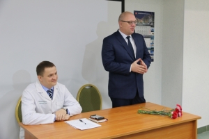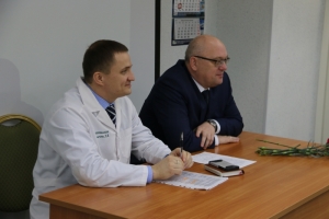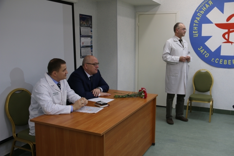 Сегодня глава ЗАТО г. Североморск Владимир Евменьков побывал в Центральной районной больнице, где поздравил коллектив с наступающим 60-летием учреждения и принял участие в возложении цветов к памятной доске Почетного гражданина города Североморска Т.Я. Генис.