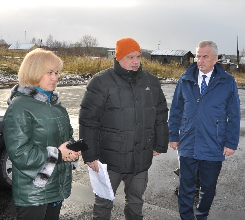 Елена Абраменко и Евгений Алексеев проинспектировали также завершение работ на площадке для проведения поселковых праздников в п.г.т. Сафоново. На заасфальтированной площадке осталось уложить резиновое покрытие.