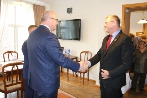 В городской администрации встретились глава ЗАТО г. Североморск Владимир Евменьков и мэр г. Вардё Енсен Роберт Дитлев.