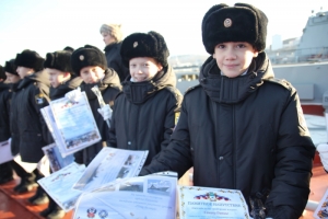 Посвящение в кадеты североморских школьников проходит на кораблях Северного флота с 2003 года. Первое посвящение прошло на ракетном крейсере "Маршал Устинов". Нынешняя церемония стала юбилейной пятнадцатой.