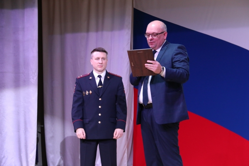 Сегодня с профессиональным праздником коллектив Межмуниципального отдела МВД России по ЗАТО г. Североморск и г. Островной поздравил глава ЗАТО г. Североморск Владимир Евменьков. Торжественное собрание прошло в Доме детского творчества им. Саши Ковалева. Пожелав коллективу здоровья, терпения и удачи, Владимир Васильевич вручил начальнику МО МВД России по ЗАТО г. Североморск и г. Островной полковнику полиции Дмитрию Тямину памятный адрес и наградил сотрудников отдела Благодарственными письмами и Почетными грамотами.