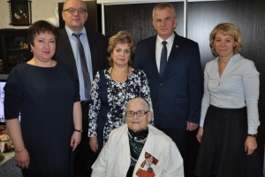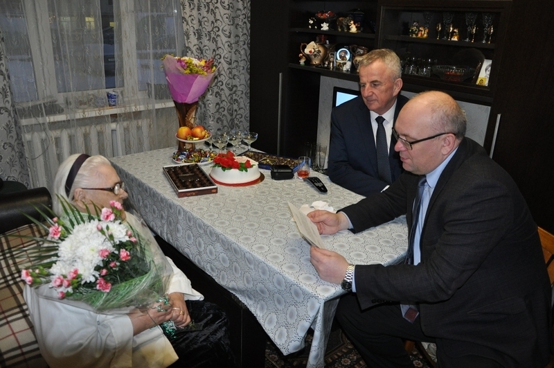 22 ноября Глава ЗАТО г. Североморск Владимир Евменьков и Председатель Совета депутатов флотской столицы Евгений Алексеев поздравили с 90-летием Анну Михайловну Жучкину и вручили ей поздравление от Президента РФ Владимира Путина.