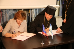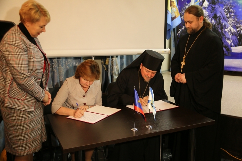 В ходе пленарного заседания состоялось подписание Соглашения о сотрудничестве Министерства образования и науки Мурманской области и Североморской епархии.