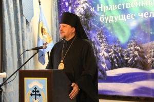 С докладом «Нравственные ценности в свете столетия Русской революции» выступил Епископ Североморский и Умбский Митрофан.