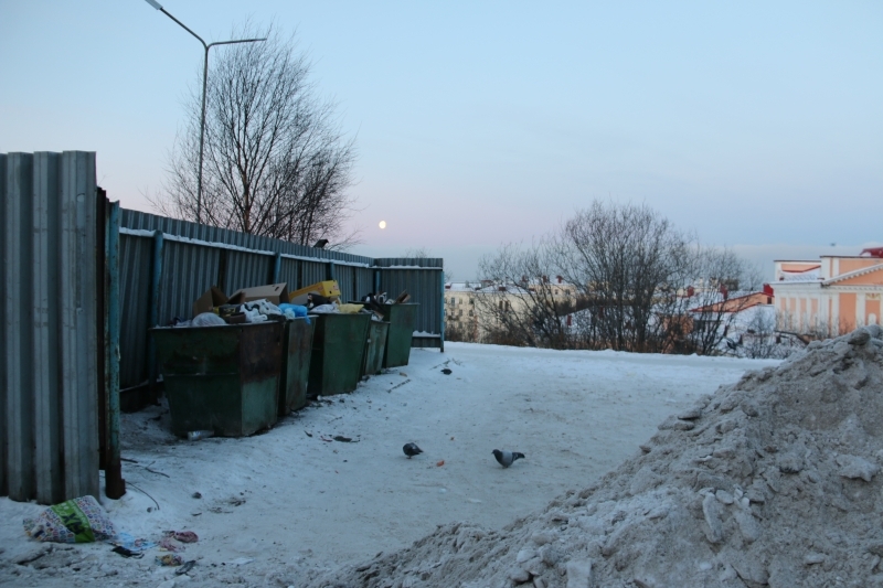 В Североморске участники инспекционной поездки побывали во дворе дома №4 по ул. Кирова. Жители прежде часто обращались с жалобами на разлетающийся вокруг контейнерной площадки мусор, управляющая компания приняла необходимые меры: ручная уборка производится трижды в день. Но из-за сильных ветров на открытом участке перед спуском к нижней части города, по мнению горожан, нужны другие меры. УК «СЖКХ» рассмотрит возможность перемещения площадки, разворота её от ветра, если позволит расположение сетей.