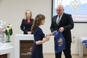 - Получение паспорта – важное событие в жизни каждого человека, а в вашем случае, оно ещё и уникально, поскольку совпало с празднованием Дня Конституции, - отметил Владимир Евменьков. - Владение главным документом гражданина Российской Федерации дает вам не только права, но и возлагает обязанности и немалую ответственность за свои поступки, и будущую жизнь. Уверен, вы будете достойными гражданами своей страны и мы неоднократно услышим о ваших победах и достижениях.