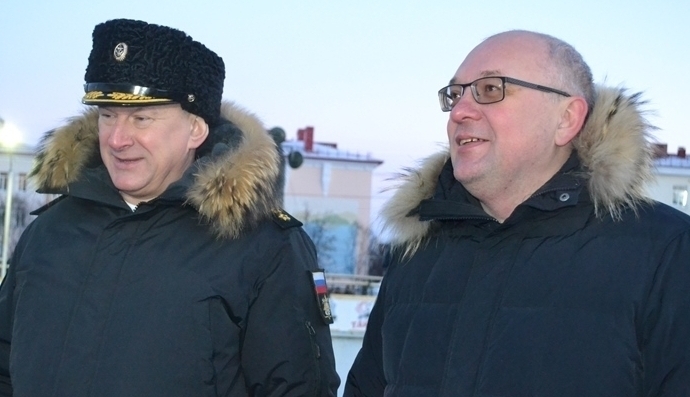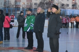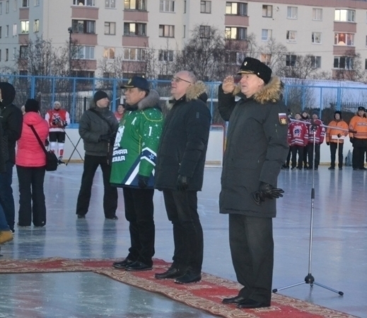 На центральном стадионе Североморска завершилась церемония открытия Северной военной хоккейной лиги, впереди серия игр Новогоднего турнира. Хоккеистов и болельщиков приветствовали командующий СФ адмирал Николай Евменов и глава ЗАТО г.Североморск Владимир Евменьков. И, конечно, не обошлось без Деда Мороза со Снегурочкой.