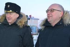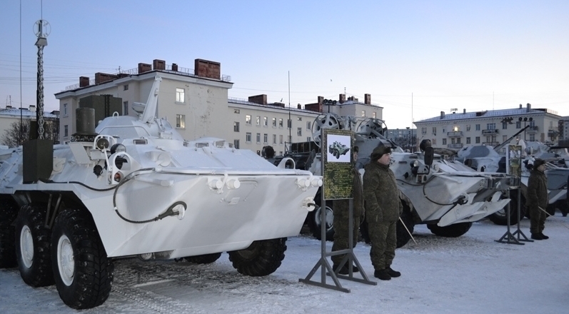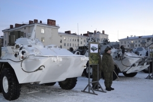 Гости спортивного праздника могли не только наблюдать за игрой хоккеистов "Тайфуна" и "Бастиона", но и осмотреть выставку военной техники, прокатиться на арктических снегоходах, отведать гречневой каши и горячего чая.