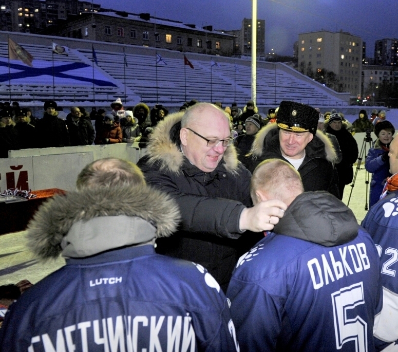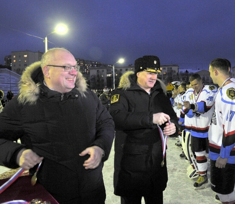 Сегодня на стадионе Центра морской и физической подготовки Северного флота состоялось торжественное закрытие новогоднего турнира по хоккею с шайбой Северной военной хоккейной лиги. Командующий Северным флотом адмирал Николай Евменов и Глава ЗАТО г.Североморск Владимир Евменьков поздравили участников со спортивными достижениями, а лидеров турнира - с победой.