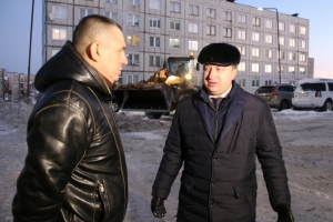Участники рейда оценили состояние дворов на улице Кирова и Гаджиева. В некоторых из них чистка трактором действительно производилась, однако была недостаточно качественной. Андрей Владимирович совместно с председателем комитета по развитию городского хозяйства Александром Савченко указали заместителю УК «СЖКХ» Василию Ересю на недостатки, а именно – при уборке дворов техникой должны быть задействованы дворники, чтобы устранять недочеты; не допускается оставлять наваленный после уборки снег во дворах дольше чем на сутки; после уборки дворник должен посыпать пешеходные дорожки и т.д.